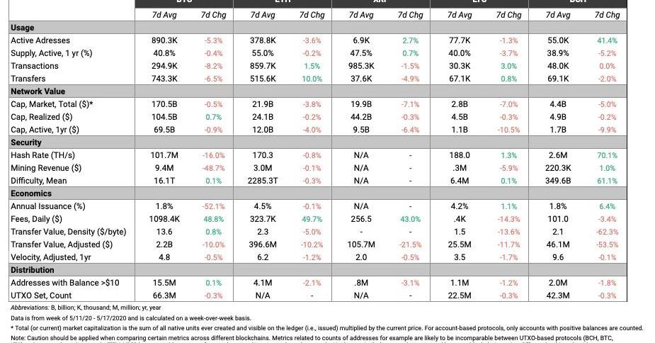 Source:CoinMetricsNetworkDataProBTC和ETH的交易費用繼續攀升,但大多數其他指標與上周相比相對持平。BTC的交易費用中位數在5月14日達到2.88美元,此為2019年6月以來的最高水平。同時,以太坊的交易費用中位數在5月14日達到0.25美元,此為2018年8月以來的最高水平。交易費用中位數往往會在區塊容量擁擠時激增。關于這一飆升的原因,我們將在下文中進行探討。網絡亮點探尋