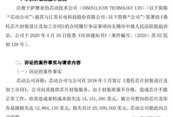 XRP/HKD-1.72%吳說區塊鏈獲悉,礦機公司芯動科技向A股上市公司、中國芯片封裝龍頭企業長電科技發起訴訟,索賠2500萬美金,折合人民幣約1.74億人民幣。長電科技4月30日收到《應訴通知書》。芯動稱,與長電2018年3月簽訂《委托芯片封裝設計及加工合同》,向芯動提供芯片封裝服務,由于封裝質量不合格,造成芯片不能正常工作,造成來料損失達14151390美元,被公司暫扣的芯片及庫存晶圓損失達12864130美元,損失共計2500萬美元。長電方面則稱,2018年3月末芯動本應該付測試費800萬美元,6月應付1325萬美元,后芯動以質量不合格拒付。對此長電科技也將依法維護權益。2018年年初比特幣價格高達1.7萬美金,但在3月跌至9000美元,6月更跌至6000美金。因此長電科技似指芯動因行情暴跌而拒絕付費。封裝是芯片量產之前的重要一環,簡單來說,完成設計與制造后,IC芯片需要安上一個更大尺寸的外殼,將其放置在電路板上,這就是封裝。相比流片與制造,封裝技術難度更低,因此中國企業已經占據一定的市場份額。目前長電科技的最大單一股東為中芯國際。這不是第一次礦機廠商與本土芯片制造商產生糾紛。2019年12月,億邦香港子公司香港比特有限公司在香港高等法院起訴芯原微電子股份有限公司全資子公司——芯原有限公司,稱被告向原告提供的2589片10nm三星晶圓存在質量缺陷,導致原告受損金額約2507萬美元,約合1.75億人民幣。長電科技2019年全年實現營業收入235.26億元;但歸屬于上市公司股東的凈利潤只有0.89億元。2020年一季度收入為人民幣57.08億元,凈利潤為人民幣1.34億元,均創近5年來第一季度新高。附公告全文: