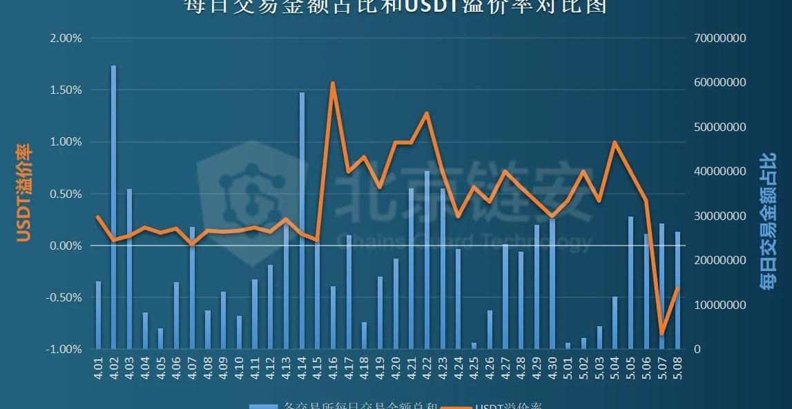 從增發USDT的溢價率來看,由于沒有出現如三月中的“3.12”暴跌,所以相關溢價率整體較為穩定,伴隨月中比特幣價格進入逐步上漲趨勢后,溢價率出現波動,但是伴隨相關USDT進入交易所,整體也都在溢價率提升后快速回落。整體來看,4月的ERC20USDT增發繼續保持高頻大額狀態,特別在3.12暴跌后,泰達在ERC20USDT的增發上明顯提速,價值超過20億美元的USDT注入市場的同時,我們也看到比特幣價格從低估回升并在4月開始加速上漲,于5月一度達到上萬美元。USDT的增發與之是否有所聯系?我們不做評價,只是將一些數據呈現,希望對各位的判斷和投資有所幫助。聲明:以上數據由北京鏈安ChainsMap系統根據比特幣網絡鏈上公開信息分析得出,僅供數據研究分析使用,并不保證絕對的準確性,我們歡迎業界各方指證,一同探討交流。
