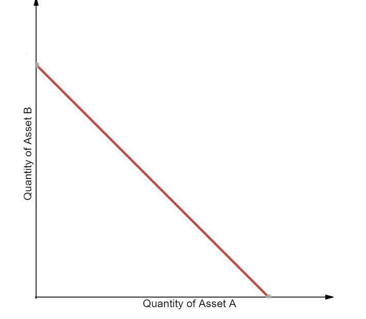 兩種資產的恒定總和函數構成一條直線,并得到一個等式x+y=k。恒定平均值做市商