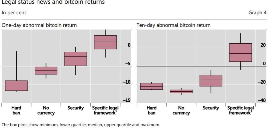 在分析為什么在無邊界區塊鏈上運行的加密貨幣會看到價格行為響應政府行為時,這篇論文的作者認為,法幣的出入口通道以及傳統機構對加密用戶仍然很重要:“為什么有關國家監管的新聞事件會對沒有正式法律依據并在國際上交易的加密資產產生如此重大的影響?我們的部分解釋是,加密貨幣依賴于受監管的機構將普通貨幣轉換為加密貨幣。”國際清算銀行和加密貨幣
