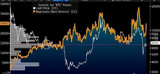 期貨“馴服”了數字黃金比特幣。此前洶涌的比特幣牛市就是隨著芝商所期貨的到來“馴服”的,但我們認為,這其實也是比特幣向“數字黃金”過渡過程中的一部分。比特幣期貨未平倉頭寸和交易量增加,意味著比特幣采用率在提升,這對于供應量有限的新興數字資產比特幣而言非常重要。期貨幫助“馴服”比特幣牛市。期貨持倉量增加代表著比特幣主流采用率有所提升,我們認為,雖然波動性將繼續加劇,但同時也會提振價格。比特幣供應量是有限的,因此需求和采用率會成為比特幣價格的決定因素。我們的圖形描繪了“馴服”過程,你可以看到比特幣期貨未平倉合約和價格的上升趨勢。最近股市動蕩時自比特幣期貨推出以來最嚴重的一次,這樣“刺激”了比特幣回到最適合交易的價格區間:略低于7,000美元。比特幣期貨未平倉頭寸和采用率都在增加