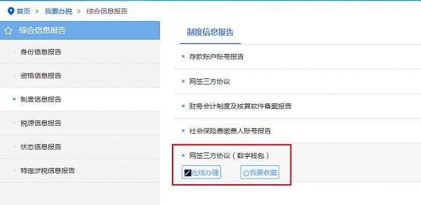 [我要辦稅]-[綜合信息報告]-[制度信息報告]-[網簽三方協議(數字錢包)]