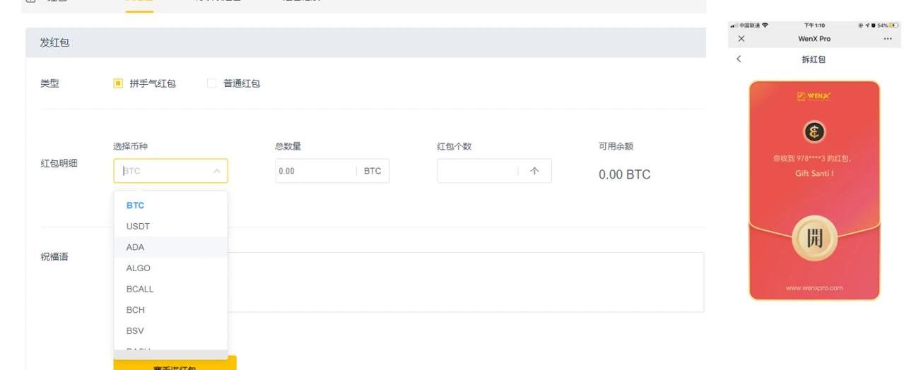 3.文克斯WenXPro-創意紅包-https://www.wenxpro.com/WenX交易所最新推出的紅包功能,也是在交易所功能應用層面的又一創新,往往我們概念里的紅包經常是通過錢包軟件或聊天軟件使用。而這種交易所通過類似于微信紅包的功能,可以提供拼手氣和普通紅包,并可以選擇所發紅包BTC,ETH,EOS,ALGO等多種不同幣種。通過微信進行轉發和領取,這一定程度上滿足了很多喜歡收取新奇數字貨幣紅包,且微信直接領取降低了用戶的門檻路程,另類空投的效果也可以促進不同交易所中的幣種使用,領取過程基本體驗與普通微信紅包一致,且不需要額外單獨的打幣,也降低了人工成本并增加了吸引與交易活力。紅包最大金額為1000USDT,個人體驗了一下,領取便利度還是不錯的沒有過于繁瑣的操作需求,符合了紅包要帶來的快速感。