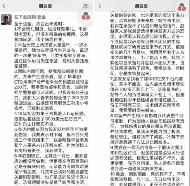 炒客網成立于2017年6月,從時間上看,稱得上是幣圈的老牌交易所。但單從用戶和資金體量看,它在業內的排名并不算高。在非小號、Coinmarketcap等幣圈數據平臺上,也沒有它的身影,但該平臺聚集著早期保持用戶。自媒體Blocklike聯絡到的5位大戶維權者里,均為2013年前后進入幣圈的早期參與者。平臺創始人金京國也是幣圈老人,早在2013年底入場,曾任職于香港導航網、幣須網。一個交易所最關鍵的地方就在于資產安全。按金京國的說法,他領導的炒客網先后跌入了資產被盜、機器人出bug、遭同事“勒索”的各種坑里。Blocklike引述一位知情人士的說法稱,炒客網早在2019年5月份便發生了財務危機,當時交易所被盜了幾百萬的幣,情急之下,金京國挪用用戶資產去賭球了,也有說法稱他做期貨后爆倉,從而導致資金缺口越來越大,走入惡性循環。4月2日,蜂巢財經與金京國取得了聯系。他否認了賭球、爆倉的傳聞,他也承認問題的源頭確實在他身上。他表示,目前站內最大負債理論值在100萬美元左右,并非外界傳言的一億元人民幣,“我看了下數據,現在未處理的提幣客戶申請只剩下200人左右,平臺有財務危機是真,但我們并非一個都不解決,只不過不能馬上照顧到所有面,因此計劃在近期推出一個能夠保證大家資產都可以順利提出的方案。”金京國并未透露方案的具體內容,只說“我用盡各種方法來補充這個缺口。”資金危機期連發兩平臺幣均暴跌