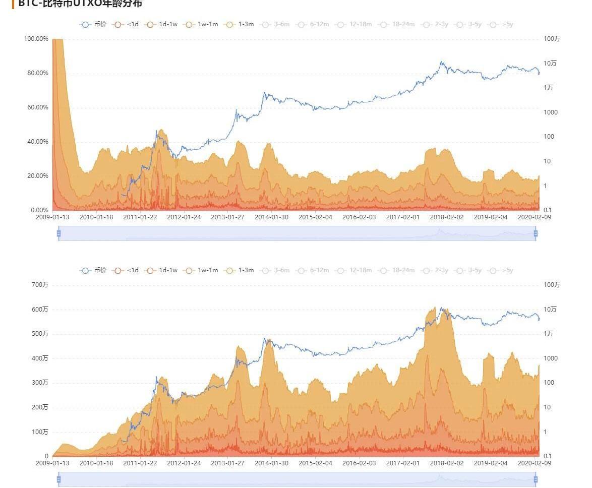 紅線以上表示USDT處于溢價在徐英凱看來,這一問題將會在未來兩個月得到解決。“美聯儲開啟UnlimitedQE模式,直接親自下場購買各種信用資產,無限QE的行為在1-2個月之后效用會逐步反應到市場流動性當中。由于新冠肺炎帶來的全球市場不確定,在之后的1-2個月中會逐步便于統計預測,當下資產無法被重新合理定價的問題將會被解決,讓一些觀望資金開始逐步入場。”徐英凱這樣認為。在徐英凱看來,通過這次跨周期跨市場級別的洗牌,將會打破現有市場結構中的平衡,籌碼分布更加集中,市場主力持倉成本大幅降低,重新上漲所需要的動能更低并變得更加容易。無論如何,眾多指標都在指向“比特幣正處于筑底過程”,比特幣比特幣鏈上數據同樣指向這一結論。鏈上數據UTXO,最硬核的筑底指標