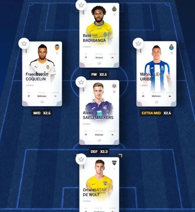 可當我這個20年老球迷滿心歡喜地進入Sorare,卻很難承認這是一款游戲。游戲中的球員卡都是NFT,按稀有度分為unique、superrare和rare三種。游戲界面有五個卡槽,分別對應著中場、前鋒、后衛、門將和替補。這就奇怪了,足球比賽的首發不是11人么,我玩的難道是5人制足球么?