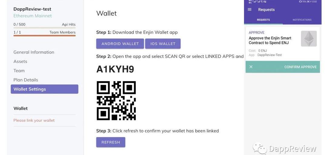 個人感覺這個定價有點坑,估計用不了多久就會調整。付費之后,在創建項目過程中需要先綁定Enjin錢包,后續會在錢包中來授權一些操作。