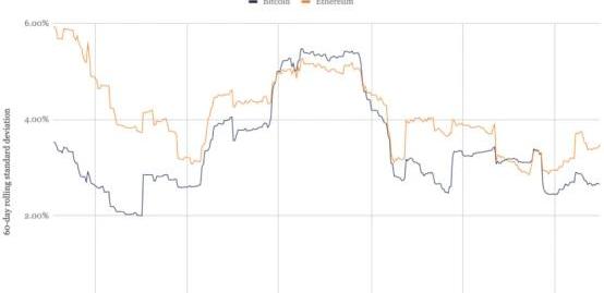 BTC和以太幣的波動性在1月份略有上升。在12月收斂之后,以太幣的穩定性再次不如BTC。