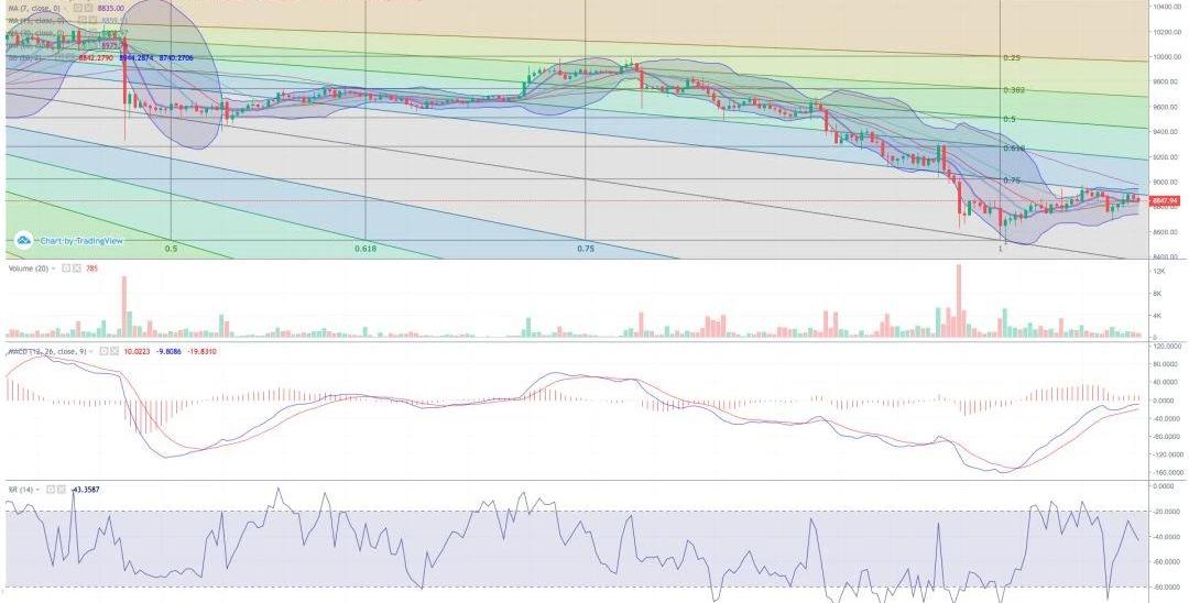 BTC:快速下跌讓投資者情緒較為恐慌,價格阻力位在$9,000,若BTC能突破$9,000則將打開反彈空間。