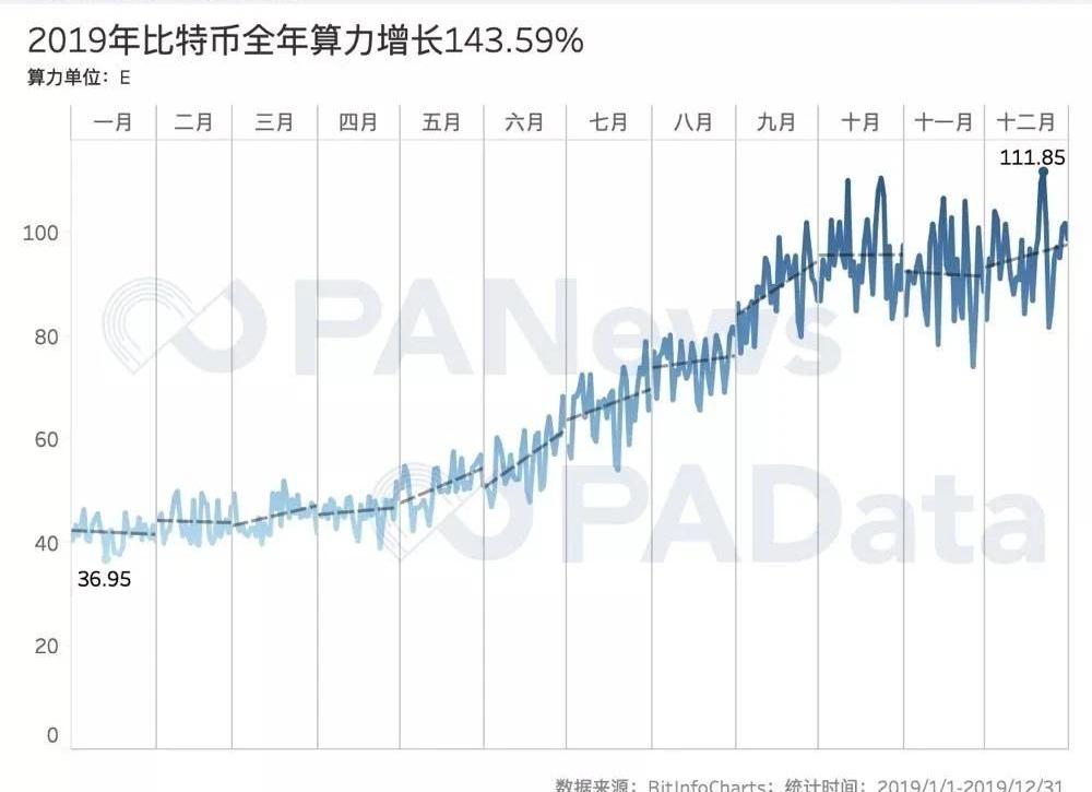 文字、數據及可視化|Carol編輯|畢彤彤數據合作伙伴|BTC.com出品|PANews礦圈,對于很多人而言是個神秘且封閉的圈子。此前,PANews與騰訊新聞聯合出品《礦圈圍城》講述轟鳴聲響徹日夜的礦場背后,比特幣“過山車”式行情之下,礦工、礦場主、礦機商、“倒爺”演繹的礦圈“江湖”。如果說,這些真實的故事只是礦圈的一個個縮影,那數據則可以還原礦圈2019年真實面貌。2019年礦圈賺到錢了嗎?這個神秘的小眾產業未來將如何發展?本文是《2019年比特幣礦業數據回顧》PADataInsights:2019年比特幣全網算力漲幅達143.59%,最高漲幅達202.71%。其中,6月在全年單月算力漲幅中最高。2019年比特幣網絡全年累計上調難度20次,下調難度7次,累計上調難度97.67%。2019年,除了第二季度以外,礦工們的盈利并不樂觀。全年算力份額,BTC.com、F2Pool和Poolin依次位列前三。在年末,Poolin和F2Pool“逆襲”BTC.com,分列前兩位。F2Pool和Huobi.pool每月的出塊數量和月均幣價表現出高度相關性,即幣價高的時候,兩者出塊數量也多,全年都踩在了節奏上。