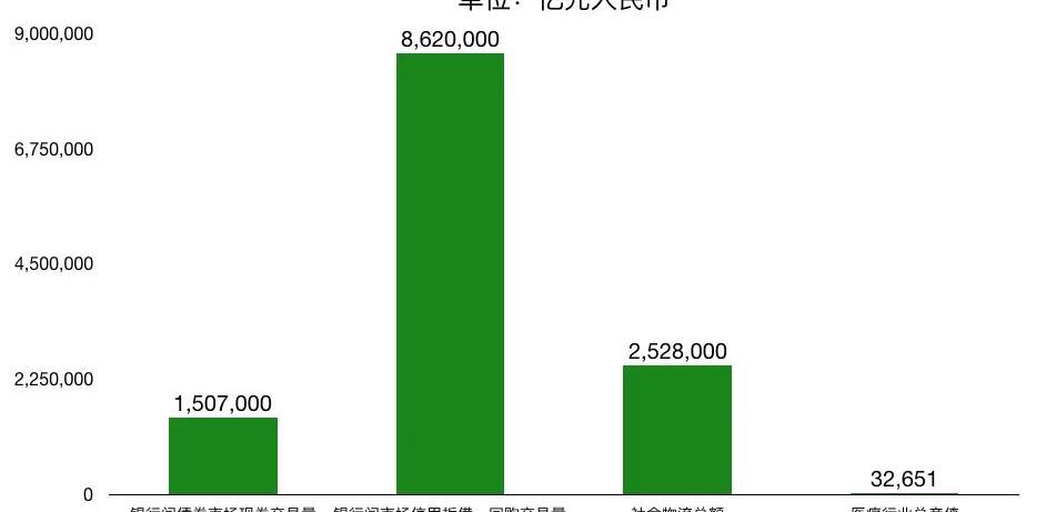 Report報告2018年,債券市場現券交易量156.7萬億元,同比增長44.6%。其中,銀行間債券市場現券交易量150.7萬億元,日均成交6029億元,同比增長47.2%。同年,銀行同業拆借、回購交易總成交量862萬億元,同比增長24%。其中,同業拆借累計成交139.3萬億元,同比增長76%;質押式回購累計成交708.7萬億元,同比增長20.5%;買斷式回購累計成交14萬億元,同比減少50.2%。銀行間人民幣利率衍生品市場累計成交21.4萬億元,同比增長48.6%。其中,利率互換名義本金總額21.3萬億元,同比增長48.0%相比之下,2018年中國社會物流總額為252.8萬億元,醫療行業總產值更是僅有3.2651萬億元。體量孰大孰小顯而易見。