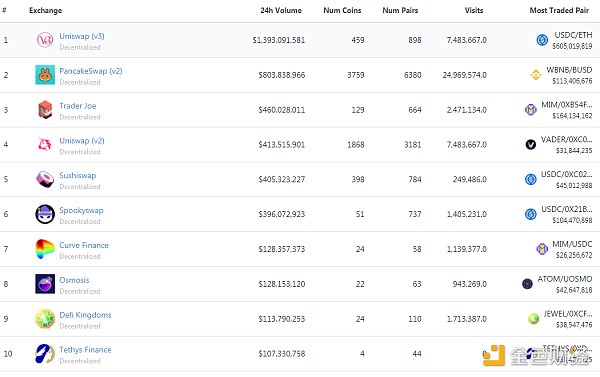 過去24小時去中心化交易所的交易量 數據來源:Coingecko