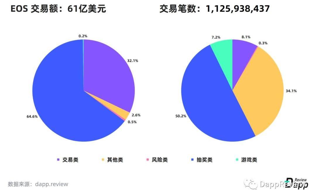 從交易額來看,抽獎類Dapp在上半年是EOS的主力,下半年呈現下降的態勢,全年占比64.6%。與波場生態類似,這些抽獎類Dapp大多有自己的分紅型代幣,這也帶動了頭部去中心化交易所WhaleEx和Newdex的交易量,該板塊占比32.1%。游戲2019年,EOS生態涌現出不少優秀的游戲類Dapp,大部分都是以原生移動端App為載體。這些游戲會通過depplink調用區塊鏈錢包應用,完成交易簽名。如果游戲涉及到頻繁的鏈上交互,那么將會在兩個應用之間來回跳轉,用戶體驗將大打折扣。不過,原生App帶來的畫面提升遠勝于H5網頁游戲,游戲的流暢度和操作體驗相對Dapp瀏覽器而言也更加友好。遺憾的是,由于AppStore和GooglePlay的審查政策,大部分基于區塊鏈的原生App都很難通過審核上架,無法在應用商店進行分發。
