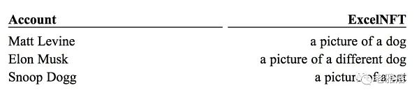 當然,ExcelCoin最初是作為一種貨幣,一種“數字現金”的形式,但這個概念的強大之處在于,原則上你可以使用相同的基礎技術(我在Excel中輸入)跟蹤任何類型的資產。例如,您可以擴展ExcelCoin技術,不僅可以跟蹤像硬幣這樣的可替代代幣,還可以跟蹤不可替代的代幣,其中分類帳中的每個條目都代表一種獨特的資產。例如: