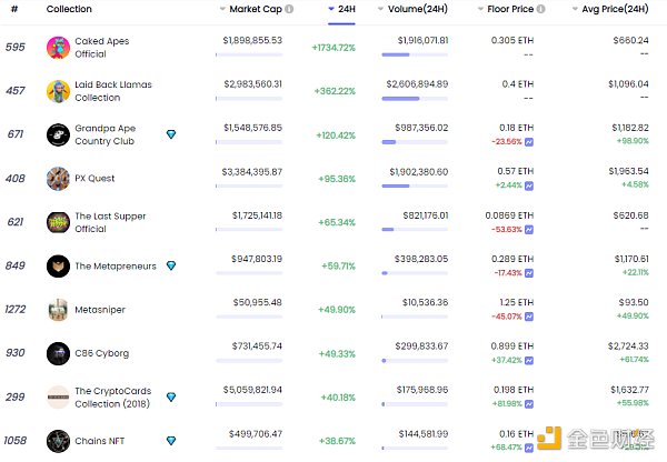 24小時內銷售價格前十的NFT 數據來源:NFTGO