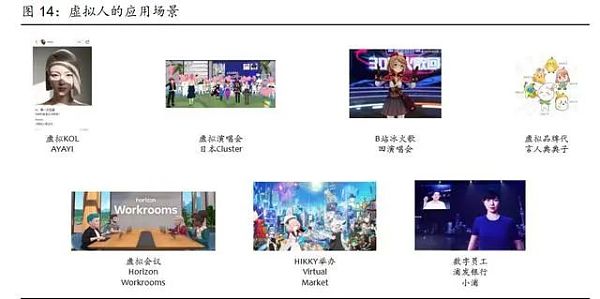 從應用層面看,虛擬人可應用于影視、傳媒、游戲、金融、文旅、教育、醫療和零售等領域,其具體場景包括虛擬網紅、虛擬演唱會、虛擬代言人進行品牌推廣、虛擬偶像、影視拍攝、明星分身虛擬偶像、直播帶貨、虛擬會議、虛擬展出、公司主要業務輔助、學術研究和虛擬導游等。