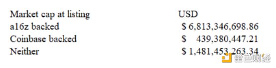 1. 在 8 個案例中,在 Coinbase 評估之前,未上市的代幣根本沒有交易。在那種情況下,我使用了 Coingecko 上最早的市場數據。有趣的是,在尚未在任何地方交易并正在接受上市評估的 8 家中,有 5 家獲得了來自 a16z 或 Coinbase 的投資!