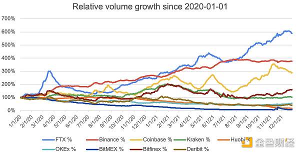 用戶量方面,FTX目前擁有超過500萬注冊用戶,較2020 年增加了 1500%,同時日活用戶已經幾乎達到2020年的注冊用戶量。 FTX.us 在 2021 用戶群增長超過 12100%。