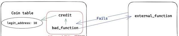 然后定義了一個能力:CREDIT。這個條件將是credit函數所需要的,但只被with_capability語句中的bad_function內部授予。這意味著直接調用credit會失敗。