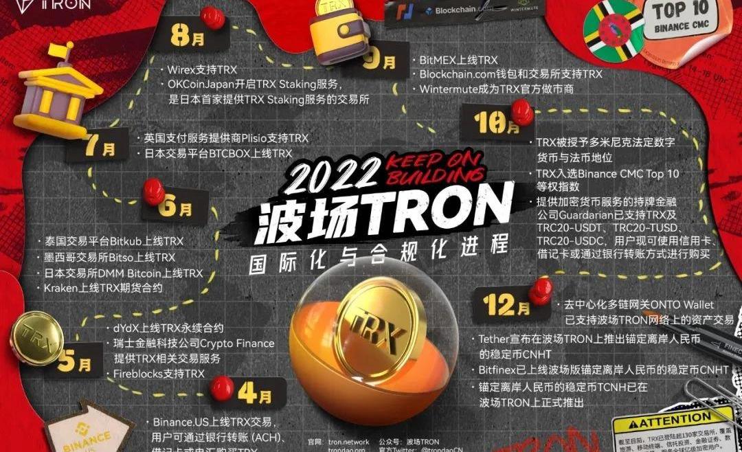 XRP/HKD-1.21%作為全球增速最快的公鏈,過去一年波場TRON在國際化與合規化上取得了諸多歷史性突破,全球影響力也大幅躍升。下面就讓我們一起來回顧2022波場TRON國際化與合規化進程吧!