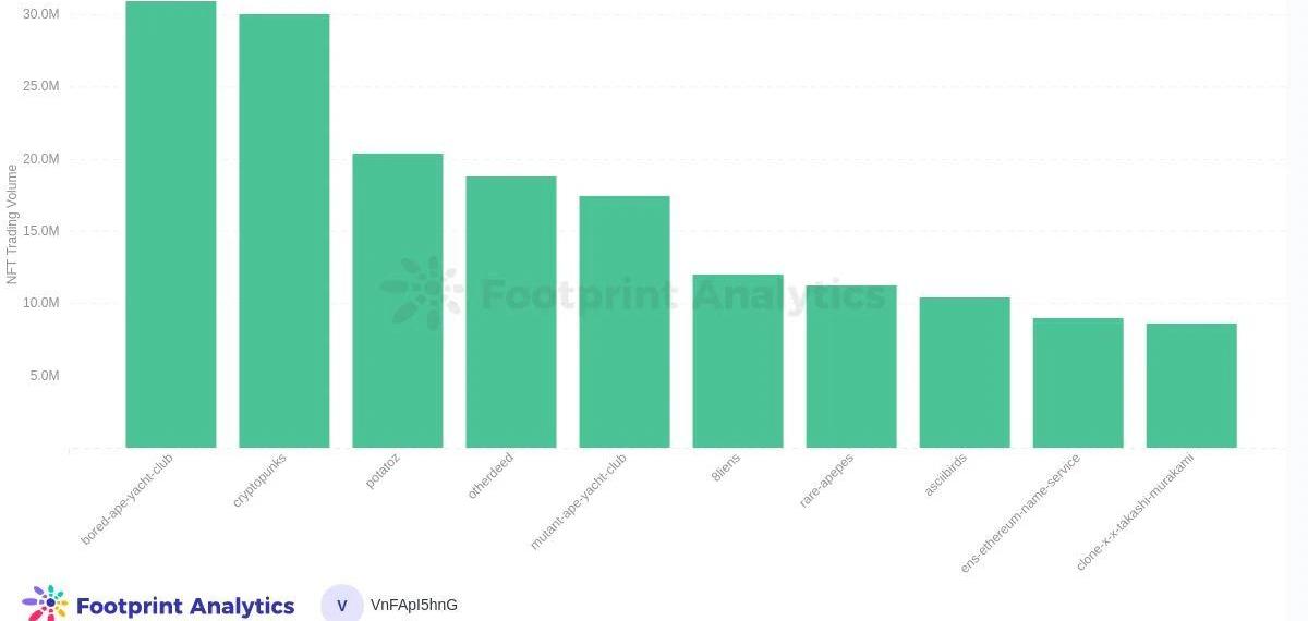 FootprintAnalytics-TradingVolumelast30days,USD,Top10NFTCollections