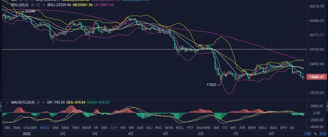 本周二納指跳空低開,直接跌破半年線及上升趨勢線,意味著反彈行情告一段落。很快市場將迎來9月份,屆時美聯儲縮表力度翻倍,QT從475億美元增加到950億美元,貨幣抽水加大馬力必然會傳導到股票市場,對市場首先造成了一定影響。本周五在杰克遜霍爾舉辦了一年一度的央行行長年會,鮑威爾發表鷹派發言帶頭砸盤,引發市場大跳水。杰克遜霍爾是一個指導貨幣政策中長期方向的會議,代表央行至少大半年的想法,去年會議鮑威爾說通脹是暫時的,拖延不加息,這也確實是拖了半年的時間,央行才在5月份開始了遲來的加息。鮑威爾在今年的會議上說話偏向鷹派,共有三個要點:高利率會持續一段時間,政策目標為將通脹拉回2%的水平;不過早進行放松政策的言論,雖然通脹的數據有可能見頂,但是沒有顯示出任何的下降跡象,美聯儲也不應該被1,2個月的經濟數據所左右;預計央行將繼續加息,會有一些痛苦。鮑威爾于美國時間早上十點開始講話,十點十分講話完畢后,美股開始大跳水,三大指數都跌了3%以上。