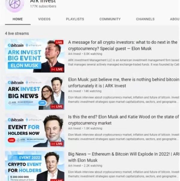 英國陸軍的YouTube賬號昵稱此時已被改為由CathieWood經營的投資管理基金ArkInvestments,發布了一則標題為“方舟投資與埃隆?馬斯克:以太坊和比特幣將在2022年爆發“的視頻。