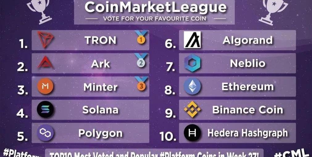 8月2日,CoinMarketLeague發布“第30周得票最多和最受歡迎的十大區塊鏈平臺榜單”,波場TRON高居第一.