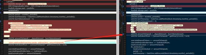 對應的_autoDeposit函數則實現了"特權"質押,即不需要轉入Token進行質押。同時該函數直接暴露給了用戶,函數對比如下: