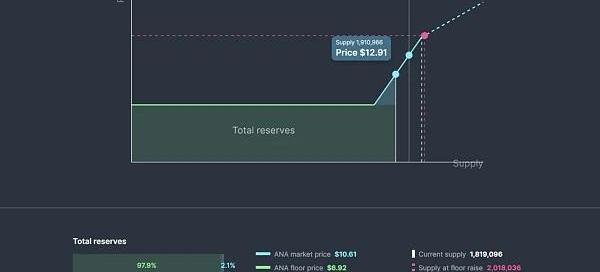 而當流動性被分配給FSL時,AMM會繼續進行判斷:可以用市場價交易的ANA的價值達到或多于資金儲備池總儲備的30%情況下,大于30%的部分會被視為盈余,同時,系統會把這個閾值降低至總儲備金價值的25%,儲蓄金重新分配,從而使地板價抬高。以此類推,每當有新的資金涌入,都會重復此過程從而使地板價一直提升。