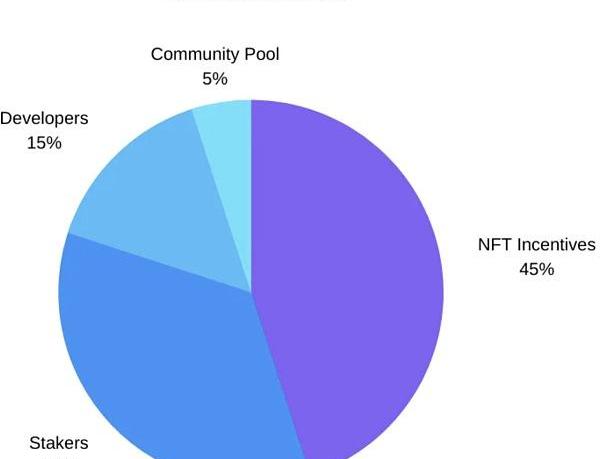 45%的區塊獎勵被留作NFT競價和staking獎勵。代幣持有者將能夠通過在一定時期內對NFT進行競價和staking來獲得收益。