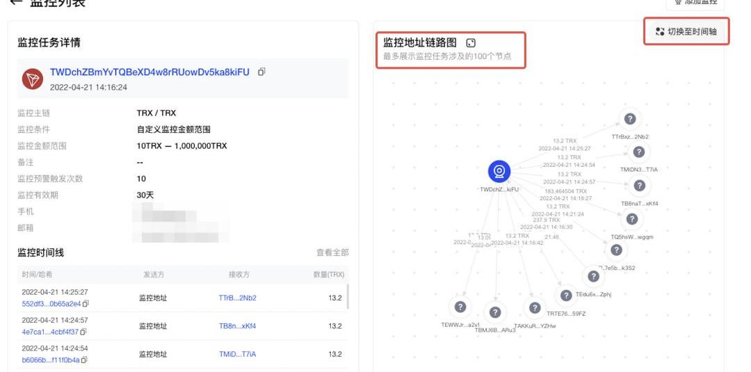監控詳情頁則是以監控任務詳情、監控地址時間軸、監控時間線這三大模塊呈現,可視化程度更優。
