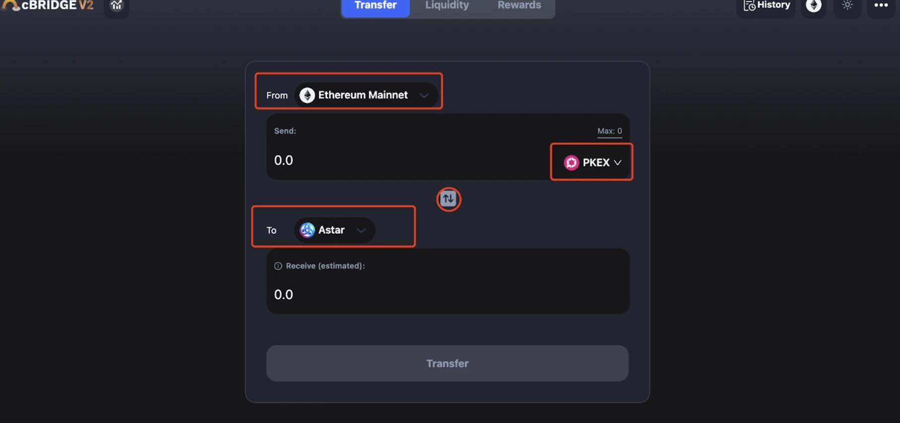 注意:目前只有cBridge支持PKEX,USDC和USDT從Ethereum到Astar的轉移,cBridge也將很快支持PKEX從Shiden到Astar的轉移。