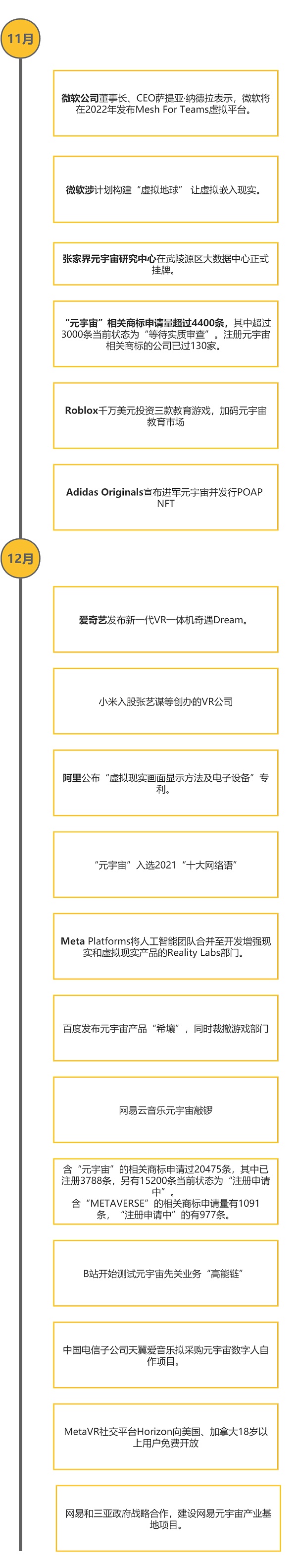 所以,我們分企業觀點、投融資、主要事件三個部分,做了一個2021元宇宙時間軸。