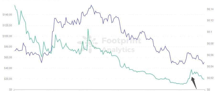 玩家很容易因為幣價的波動而影響在游戲中的操作。幣價過低時,玩家會對游戲的收益性產生動搖,失去繼續游戲的興趣;幣價較高時,繼續游戲會消耗掉高價值的token,損失玩家的資產。