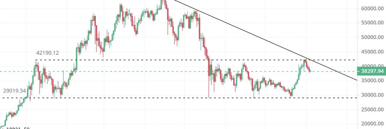 反彈(7月底至今):最高漲至42000美元上方,看跌情緒有所緩解。