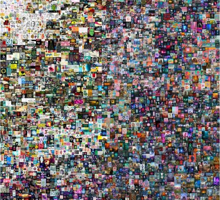 該NFT藝術品由傳奇藝術家Beeple創作,耗時13年,作品名為《EVERYDAYS:THEFIRST5000DAYS》。自2007年年中以來,Beeple每天都會發布一張獨特的圖像拼貼畫,這份NFT作品就是這些畫作的合集。