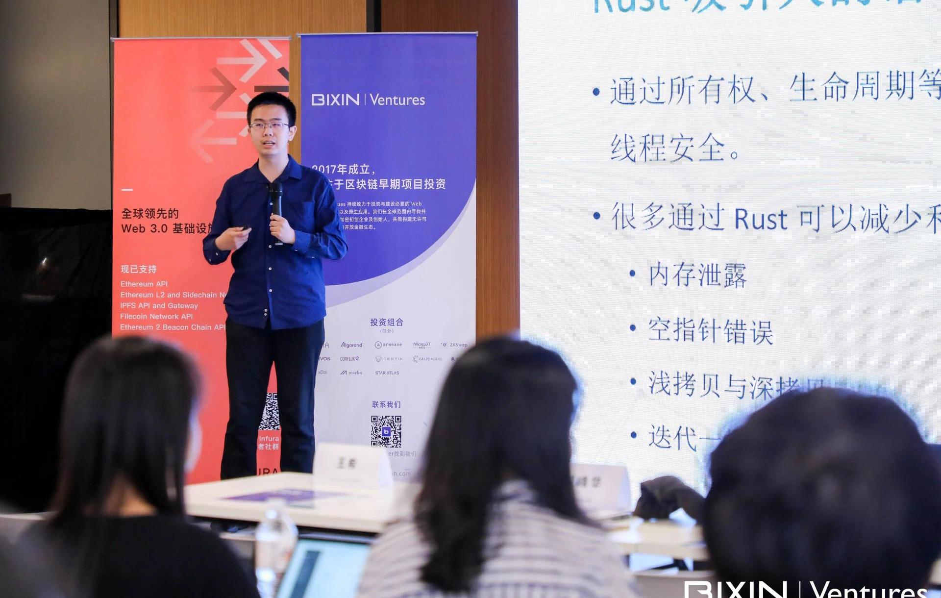 作為活動主辦方,BixinVentrues合伙人王希在致辭中首先感謝了各位嘉賓和Rust愛好者的到來,他介紹說,自2017年以來,BixinVentrues就持續致力于投資和建設必要的Web3.0基礎設施以及原生應用,近年來,區塊鏈領域匯聚了眾多優秀開發者,開放金融獲得了蓬勃發展。