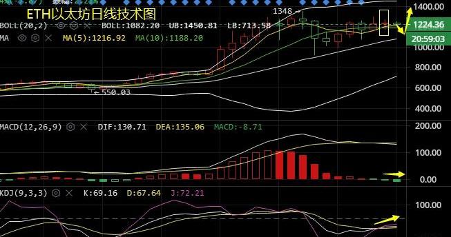 比特幣,自1月11日迎來報復性的大跌之后,行情呈現一定的反彈,但是沖擊40000美元關口之后承壓回落,整體的行情處于1月11日的高低位之中運行調整。日線收于十字星,并且還是在BOLL中軌位置附近,行情越來越微妙,盤整的勢頭越來越強烈,一段爆發式的行情有望到來。BOLL呈縮口狀態,均線MA5/MA10粘合于36700美元一帶形成阻力,而下方BOLL中軌于35000美元一帶形成支撐,短期多空勢均力敵,就看行情傾向于哪一邊。短周期KDJ技術指標緩和,附圖MACD動能偏弱,預計大餅將繼續保持調整趨勢。短線上看比特幣偏向震蕩,重點關注34200-36800美元區域,穩健的話觀望為主,一旦行情突破該區間,即可順勢追,但是震蕩之中的行情,謹防出現單邊或破位。合約交易上,多空都是機會,但是倉位和風險一定要控制好,中期趨勢我們依然是看漲,對于現.貨交易者而言,回調仍是囤幣良機,最好是使用分批建倉法,這樣利潤才能有最大的保障。若對技術行情以及消息面解讀把握不定或者持有套單的朋友皆可與談老師進行探討。訂閱公眾號;幣圈散戶聯盟。