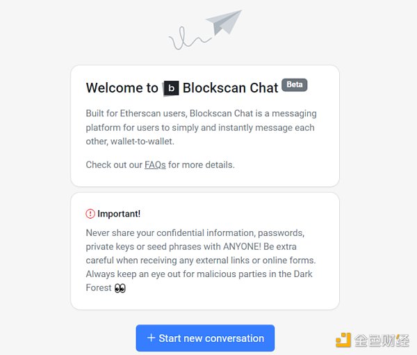 值得一提的是,采用的聊天方式“Blockscan Chat”是由創建Etherscan區塊鏈瀏覽器的團隊Blockscan發布的“Blockscan Chat”測試版。