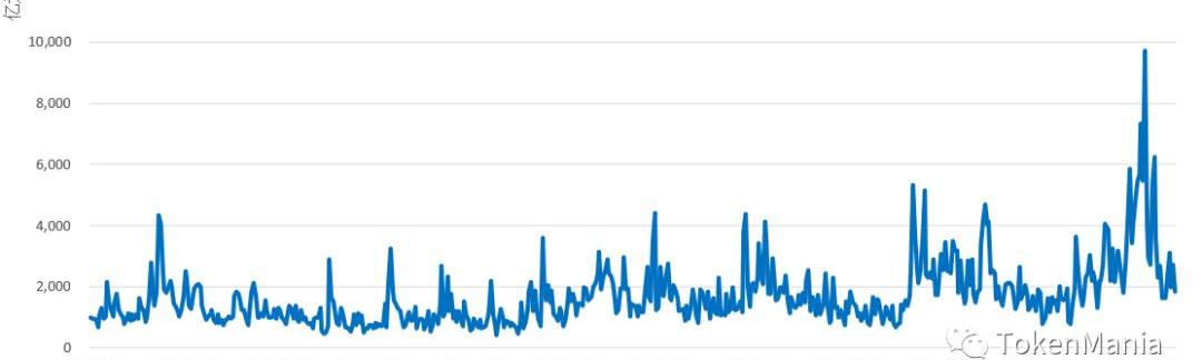 圖4九大交易所歷史每日總交易量變化