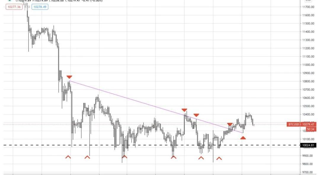 BTC近期經歷了低迷期,在幾天內從12000美元一路下跌到9900美元,現在BTC已經設法在10000美元的水平上找到了一些重要支撐。
