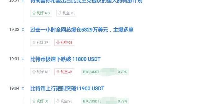 隨著周一周二行情的運行,比特幣從11450一線開盤,短短2天的時間觸及12000關口,拉升600點漲幅,特別在昨天行情初次觸及11900一線后,波動快速,瞬間下跌100點回到11800,然后再次拉升,不僅站穩11900,而且再次突破12000前期高點;短短一個小時內全網爆倉達到5829萬美元。