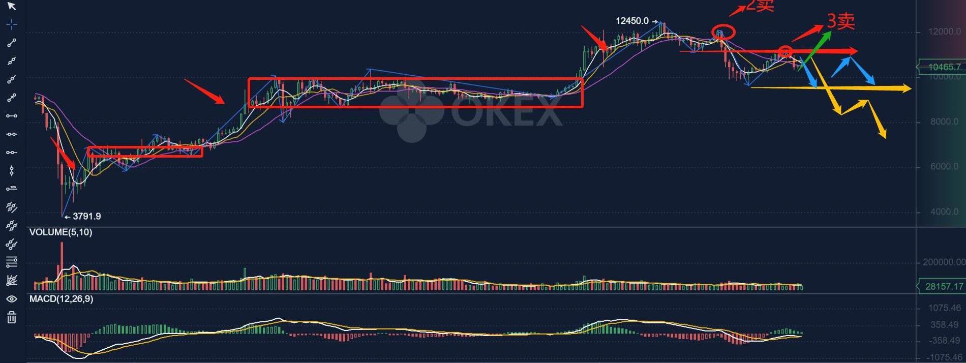 綜合:比特幣的日線橫盤只要回調不破9833.6美金就會有一波拉升,至于能否新高,還需要交給市場去驗證。現在的話依然最好是進行一個觀望,回調不破9833.6美金且日線級別macd金叉開始進場。