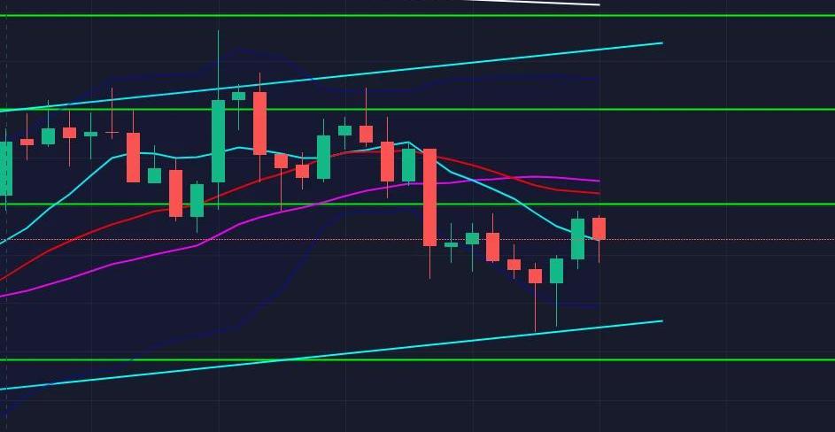 ETH今日開盤先是震蕩下行,隨后底部獲得支撐開盤震蕩上行,在上方410沒有能量跟隨隨后開啟大幅度震蕩下行,目前在底部390附近形成支開啟反彈,從日線來看,行情在中軌附近多次上沖無力,那么今的跌勢也是回應市場,同樣底部30均線有一個較大的支撐,也是多次沒有下破,若能有效破位,那么空勢將正式開啟,四小時來看行情還沒有到達布林帶下軌,就受到底部支撐,但是上方均線也成粘合狀態趨勢向下,kd,rsi已經成死叉向下運行,macd在零軸下方有形成死叉的趨勢,后期注意通道破位果斷進空即可。一小時布林帶已經開口為空勢,后期注意破位進場。