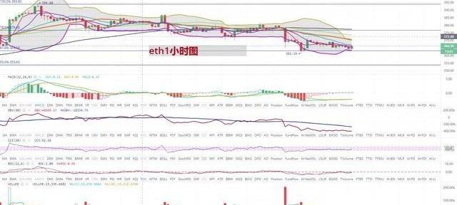 ETH行情分析:小時圖中,以太坊經過4段拉漲后,在13號后,以太坊行情已經跌到持幣者圖中第2個箱體,行情回歸到第2段拉漲時期,目前以太坊行情處于箱體底部363.15一線徘徊,破位可順勢而為,下方MACD多頭量能初步釋放,快慢線在0軸下方粘合。