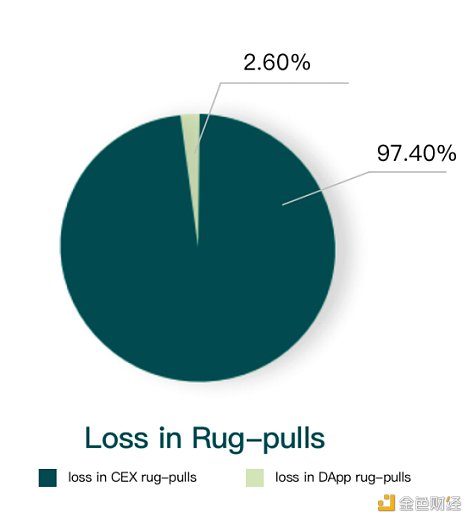 如上圖所示, 盡管涉及中?化交易所的案例數遠遠?于涉及 DAPP 的案例數, 但前者的涉案?額遠?于后者, 前者的涉案?額占? 為 97.4%, ?后者僅占 2.6%。