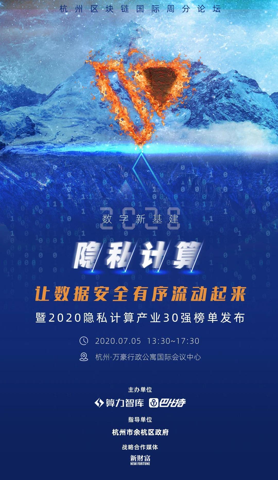 此次算力智庫與大家相聚在2020“擁抱產業新浪潮”杭州區塊鏈國際周,并聯合巴比特、海南省大數據管理局、上海人工智能發展聯盟、長三角大數據產業合作聯席會議、新財富等共同舉辦「隱私計算:讓數據安全有序流動起來」杭州區塊鏈國際周上的主題論壇。論壇上我們還將發布榜單。