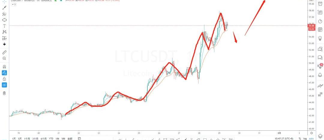 昨天基本上有兩波比較大幅度的上漲,BTC在Bitmex中價格最高沖到11430后回踩10700假突破上沖沒破430,短時形成二次沖頂回落,目前震蕩